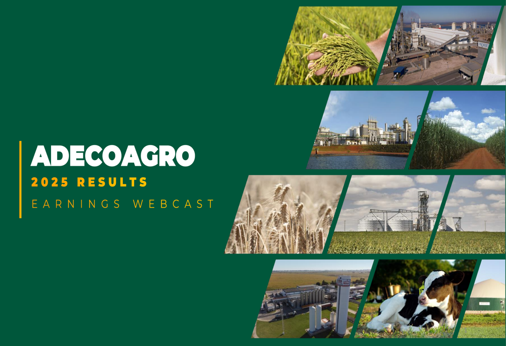 Adecoagro S.A., engages in agricultural and agro-industrial activities in Argentina, Brazil, Chile, and Uruguay. The company operates through two segments, Farming; and Sugar, Ethanol, and Energy. The company is involved in the production of a range of agricultural commodities, including soybean, corn, wheat, peanut, sunflower, cotton, and others; planting, harvesting, processing, and marketing of white, brown, and rough rice; genetic development of seeds; and production of dairy products, such as raw milk, ultra-high temperature milk, UP milk, powdered milk, semi-hard cheese, cream, cream and cocoa flavored milk, chocolate and fluid milk, and other dairy products. It also generates electricity through burning biogas extracted from effluents produced by its dairy cattle; and provides grain warehousing and conditioning, and handling and drying services. In addition, the company cultivates and harvests sugarcane to produce sugar, ethanol, biomethane, and electricity; and sells carbon credits. Further, it engages in land transformation activities, such as the acquisition of farmlands or businesses with underdeveloped or underutilized agricultural land; and the implementation of production technology and agricultural practices. The company was founded in 2002 and is based in Luxembourg, Luxembourg. As of May 1, 2025, Adecoagro S.A. operates as a subsidiary of Tether Investments, S.A. De C.V.
